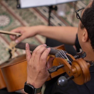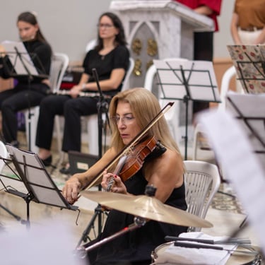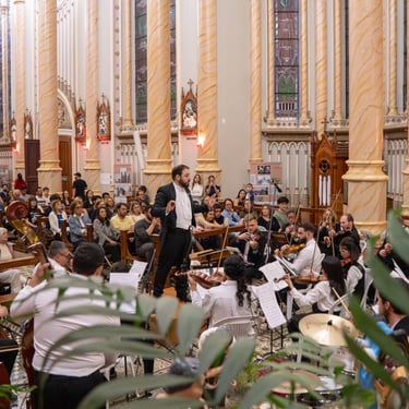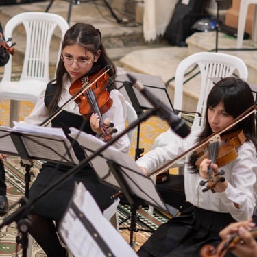 Fotos que contam histórias da orquestra.